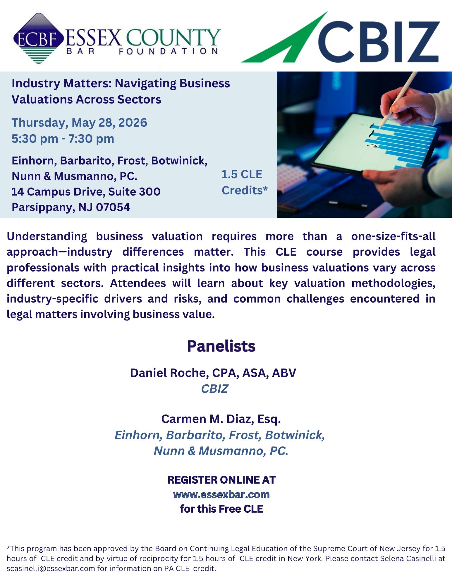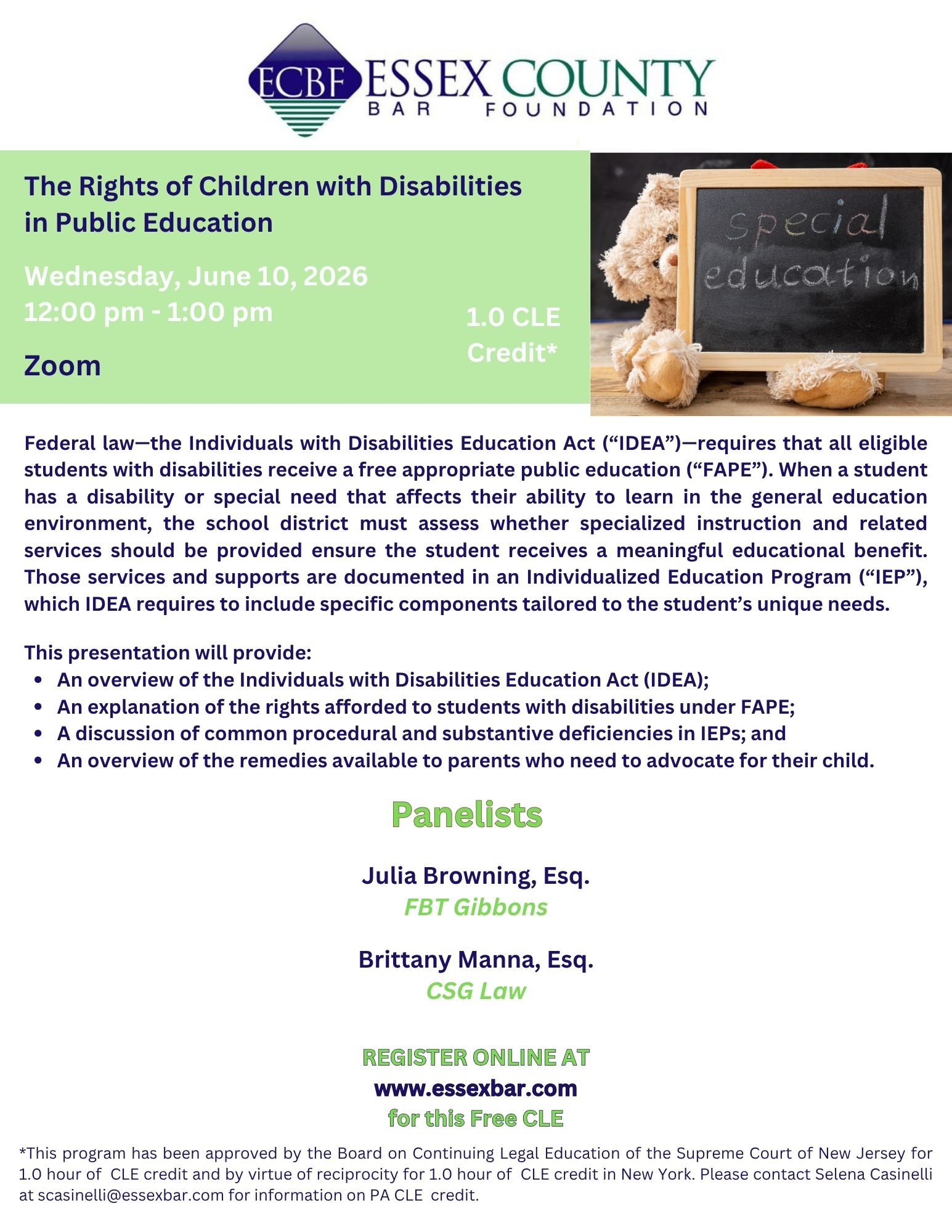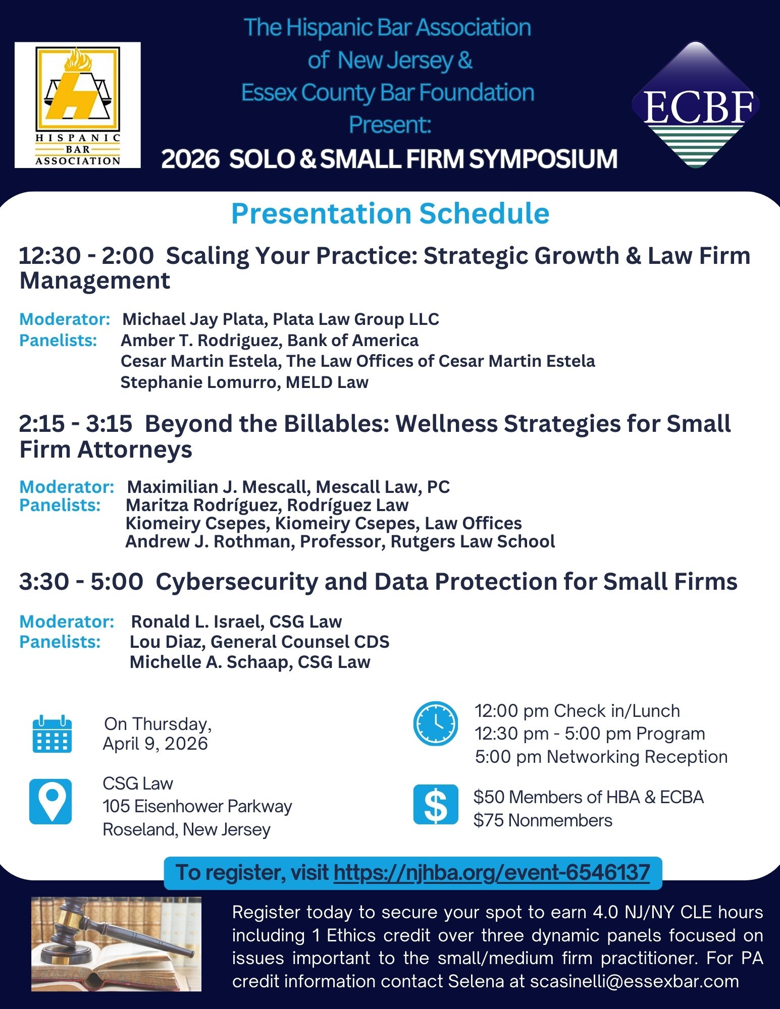 Founded more than 125 years ago, the ECBA is one of the oldest and largest County Bar Associations in New Jersey. We support a diverse network of legal professionals and are proud to serve our community and clients